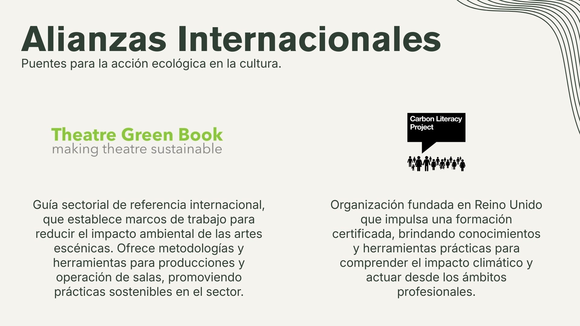 En cooperación con aliados nacionales e internacionales, articula a creadores, gestores, técnicos, espacios y organizaciones culturales para abordar desafíos compartidos mediante soluciones locales y sostenibles.