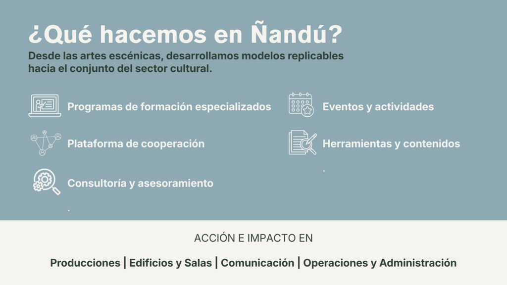 Ñandú es una plataforma colaborativa de acción ecológica diseñada para el sector cultural y sus industrias.